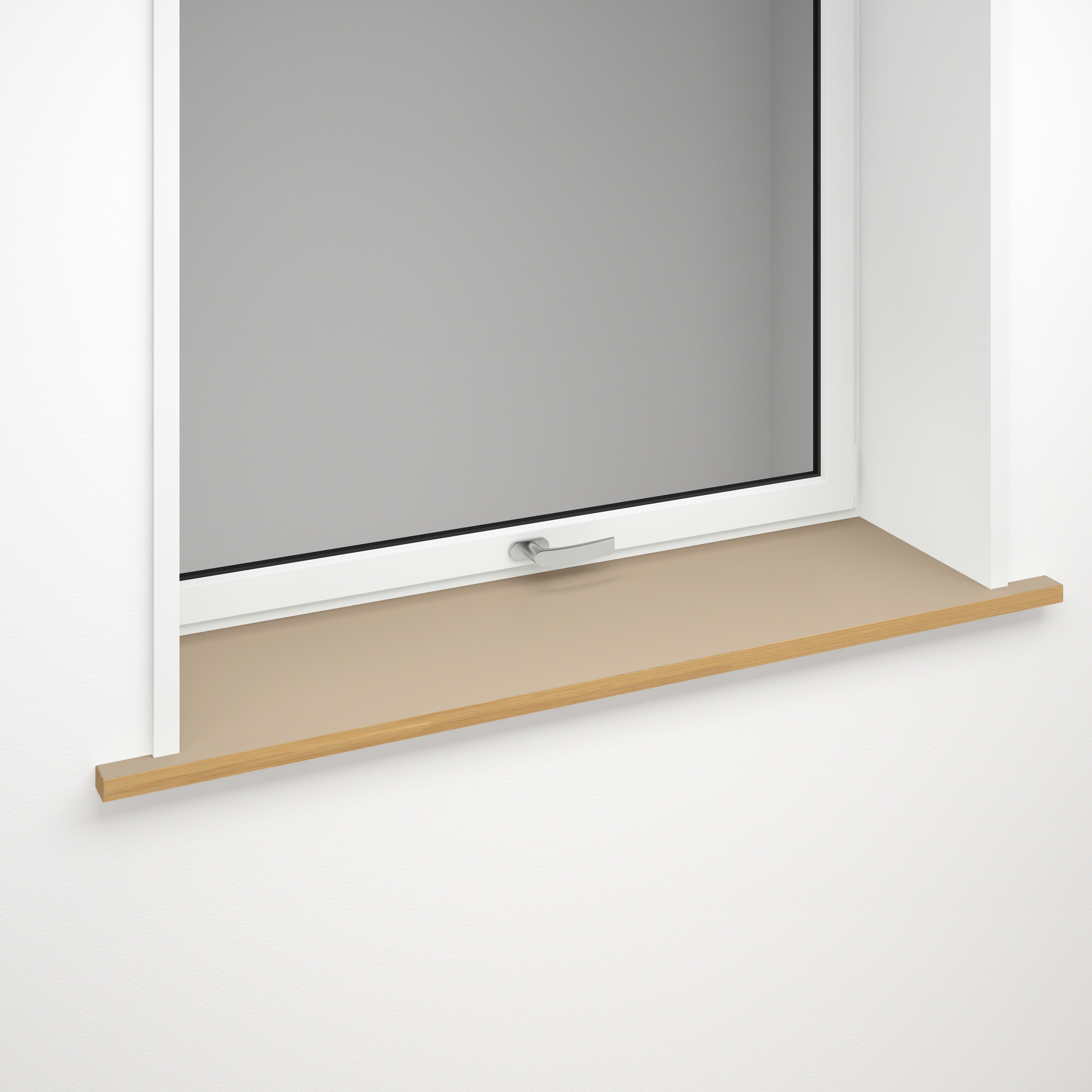 De vensterbank bestaat uit een MDF-plaat bedekt met 2 mm linoleum, dat een elegant mat oppervlak heeft en zeer aangenaam aanvoelt.